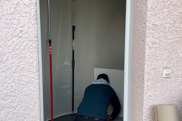 Nous avons crée un SAS à l'entrée permettant de ne pas laisser la poussière s'introduire dans la maison lors du démontage de l'ancienne porte.